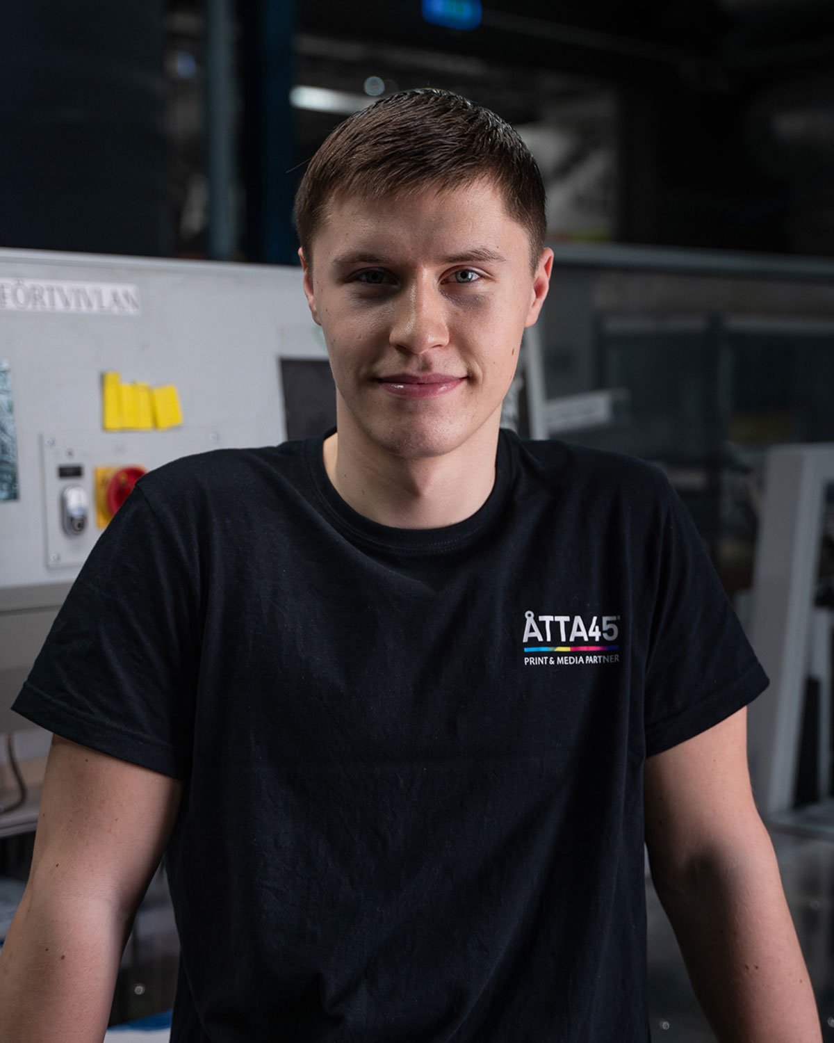 Det är roligt att få skapa färdiga produkter! Och det är kul att se hur färger fungerar och ser ut på olika material. Hela tryckprocessen är intressant och det är häftigt att jobba med stora maskiner. Tryckpressen jag jobbar med är stor som en buss typ. Jag är en nattuggla så jag vill bara jobba nattskift. Och det ger högre lön med OB-tillägg.